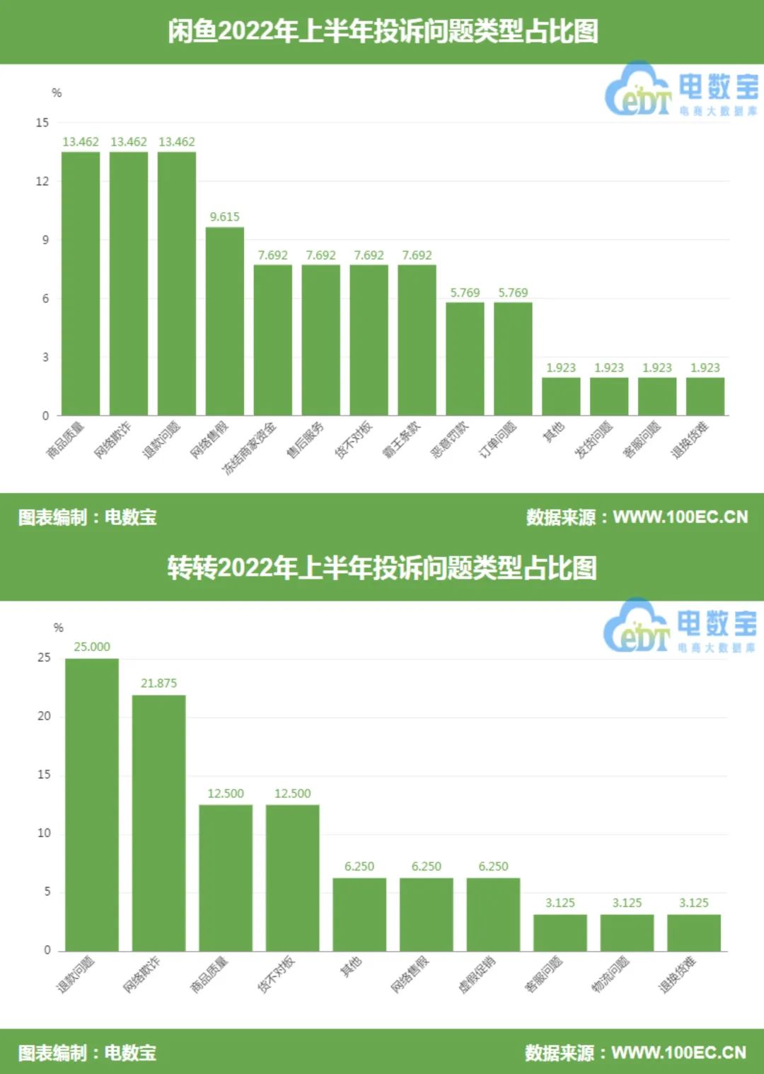 据“电数宝”统计,退款问题一直是二手电商投诉的大头。即使闲鱼和转转都推出了“小法庭”等投票仲裁功能,也很难做到让买卖双方都满意。