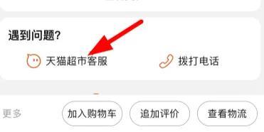 3、随便找个猫超订单点进去找到下面的天猫超市客服点进去;