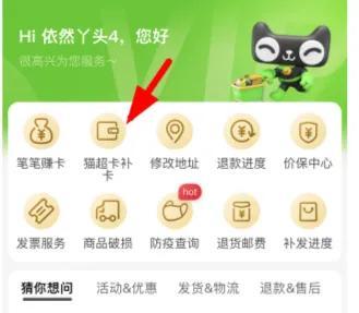 4、进入之后点击【猫超卡补卡】;