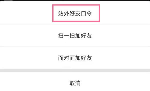 2、然后,点击右上角的三个点,选择站外好友口令。