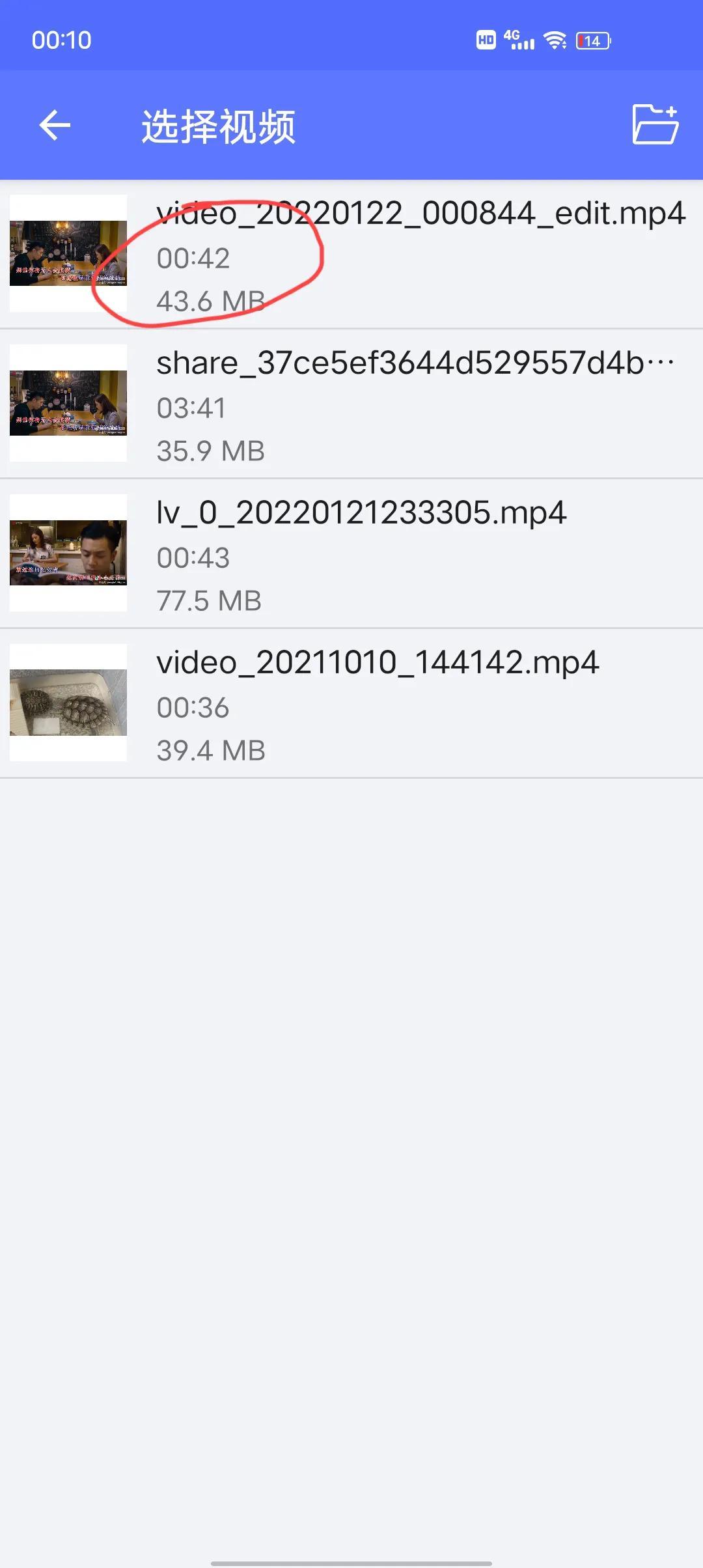 在打开的列表选择我们刚才剪好时长42秒的视频,