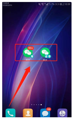 5.设置完成后我们就可以在桌面上看到两个微信图标,即代表可以同时登陆两个微信账号。