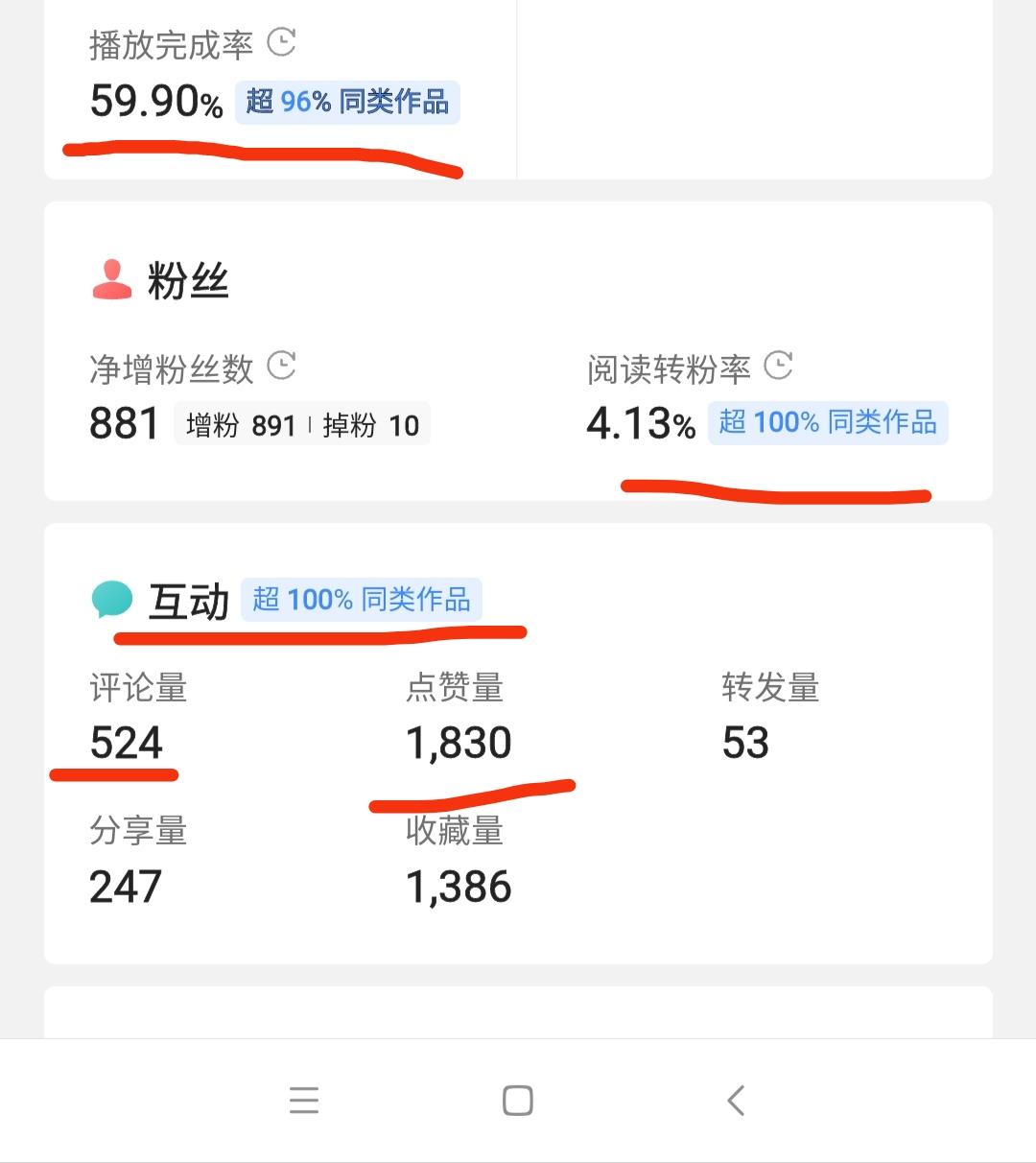 3.互动率也是仅次于完播率的重要因素,影响单价和推送,所以,视频要增加用户点赞和评论。