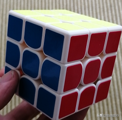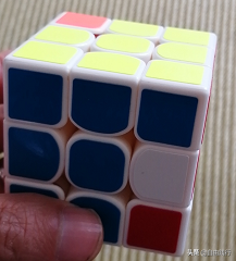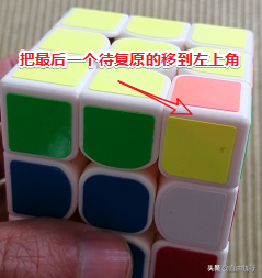 注意此处可能会引起其他层已复原的发生变化,比如上图,虽然顶部复原了,但下面颜色已经对不上了。不要担心,只要不操作失误就没问题,等最后一个色块还原,就都恢复了。一个还原后就把顺时针顶层,把待复原的角块移到左上角位置,重复上面的操作,直到全部复原。