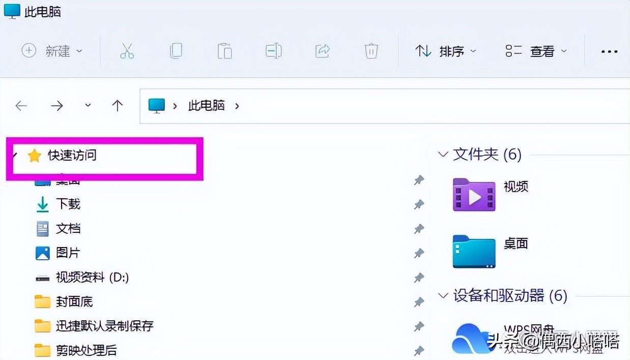 2、打开我的电脑,点击快速访问,默认就会进入资源管理器: