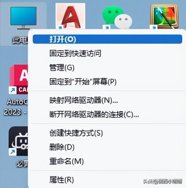 1、此电脑,点击鼠标右键,菜单打开: