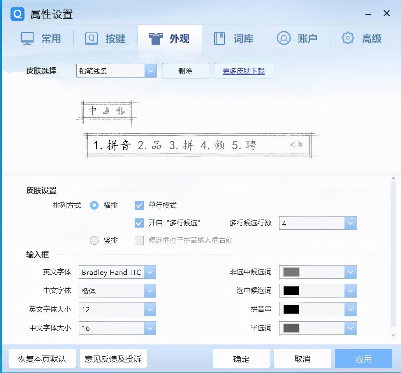 之后则是搜狗输入法的界面设置,自定义程度非常高,可以个性化的皮肤有很多。