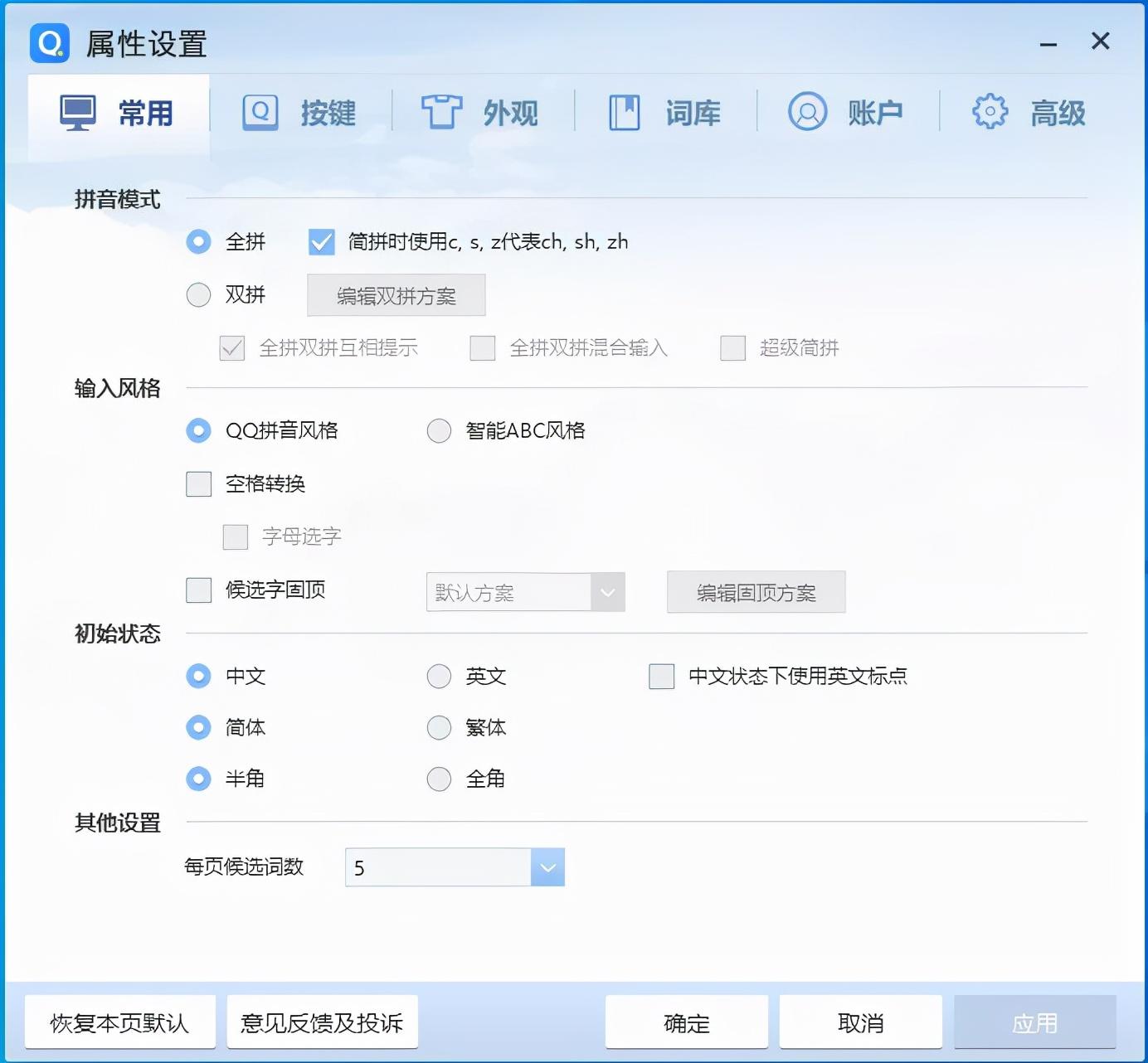 手心输入法还支持全拼/双拼、简体/繁体的切换、模糊音、快捷键设置以及智能调整数字后标点等常用功能,缺点则是不支持语音输入和手写输入。