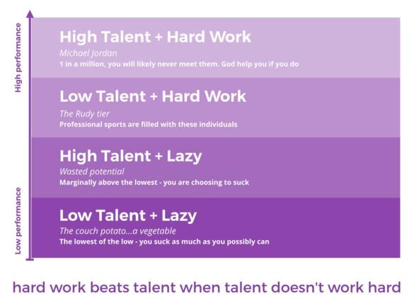 对于我们这些愿意努力工作的人来说,好消息是,即使你没有什么天赋,你取得的成就仍然远远超过那些有天赋但懒惰的人。
