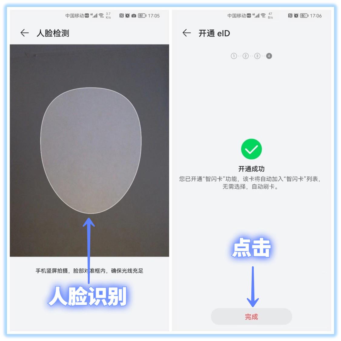 读取成功后还要进行人脸检测,识别完毕后设置一个密码,即可显示开通成功。