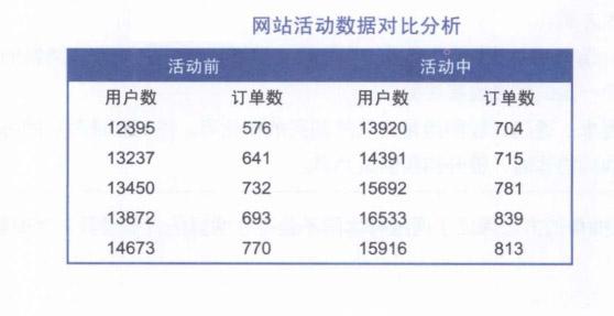 如下表:有活动前和活动中各5天的数据。以订单数作为指标,说明活动能否显著提升每天的订单量。