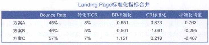 如下表格中数据,Bounce Rate衡量进入,转化率CR衡量产出。A、B、C三个优化方案哪个才是最优的呢?